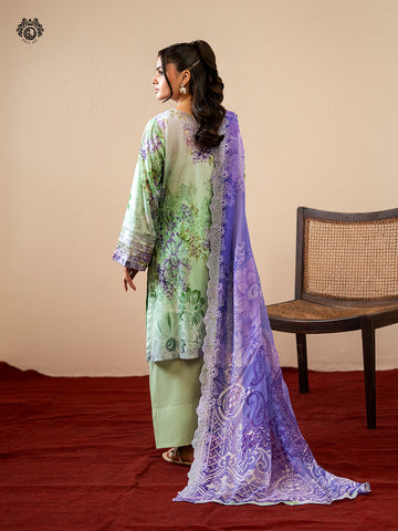 • Dupatta: Digital Printed Bamber Chiffon Embroidered Cut-Work