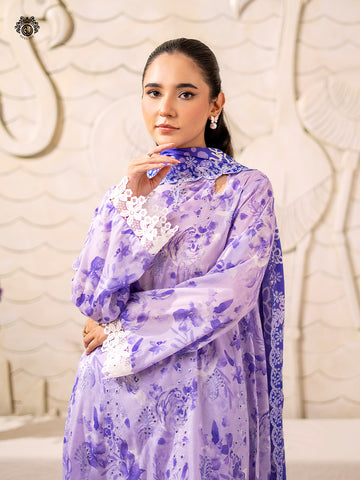 • Duppata: Digital Printed Pure Lawn Embroidered Cut-Work