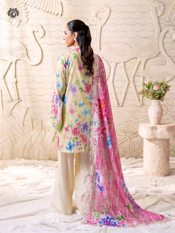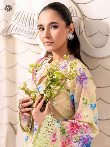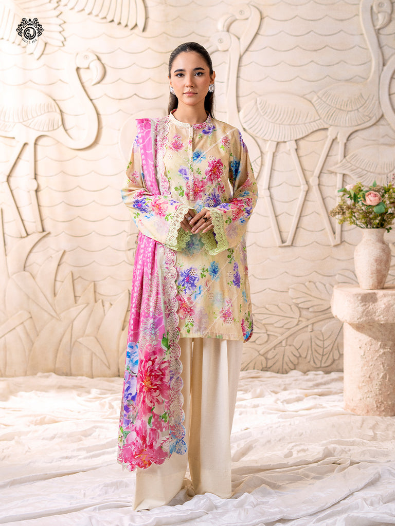 - Duppata: Digital Printed Pure Lawn Embroidered Cut-Work