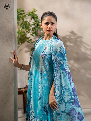 • Duppata: Digital Printed Lawn Embroidered Cut-Work