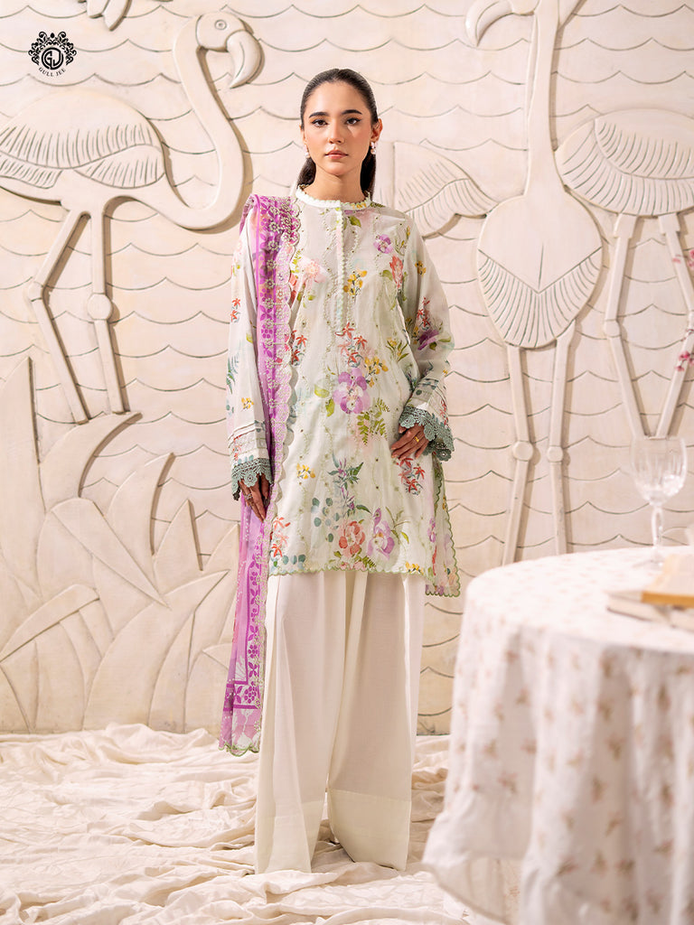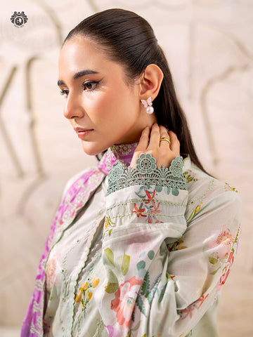 • Duppata: Digital Printed Pure Lawn Embroidered Cut-Work