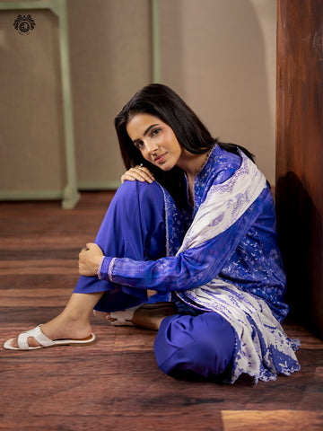 • Duppata: Digital Printed Pure Lawn Embroidered Cut-Work