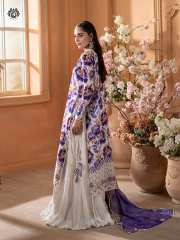 • Duppata: Digital Printed Pure Lawn Embroidered Cut-Work