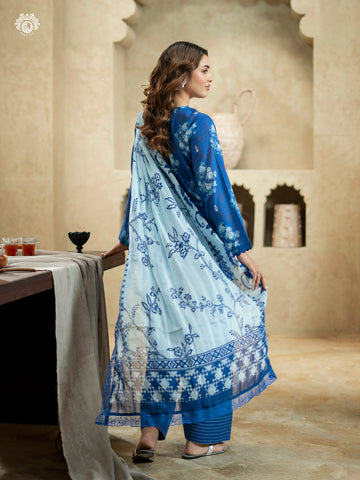 • Duppata: Digital Printed Bamber Chiffon & Four-Sided Embroidered Lace