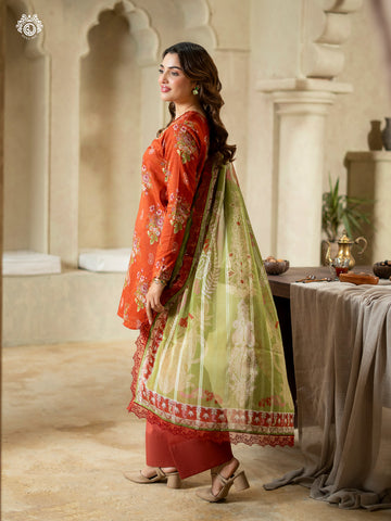 • Duppata: Digital Printed Bamber Chiffon & Four-Sided Embroidered Lace