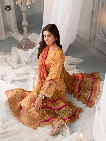 • Dupatta: Digital Printed Bamber Chiffon Embroidered Cut-Work