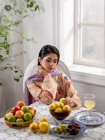 • Dupatta: Digital Printed Bamber Chiffon Embroidered Cut-Work