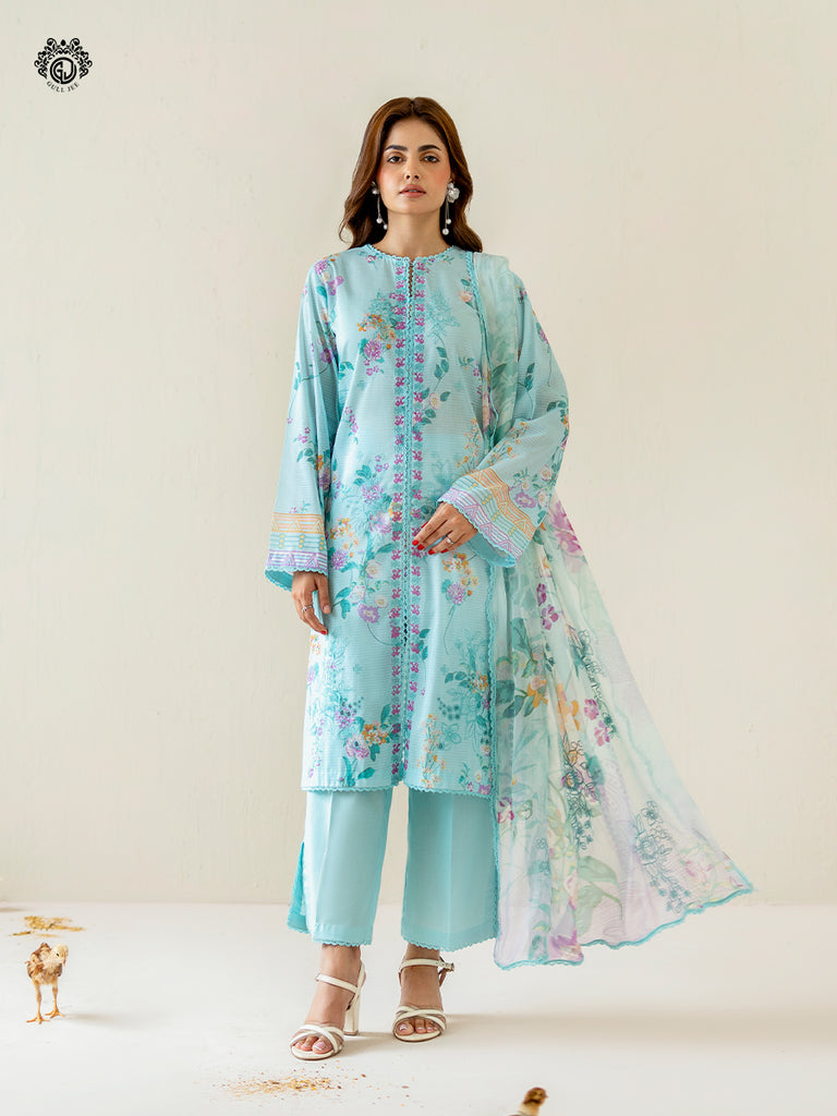 • Front: Digital Printed Lawn Bana Dora Embroidered