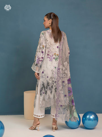 • Dupatta: Digital Printed Bamber Chiffon Embroidered Cut-Work