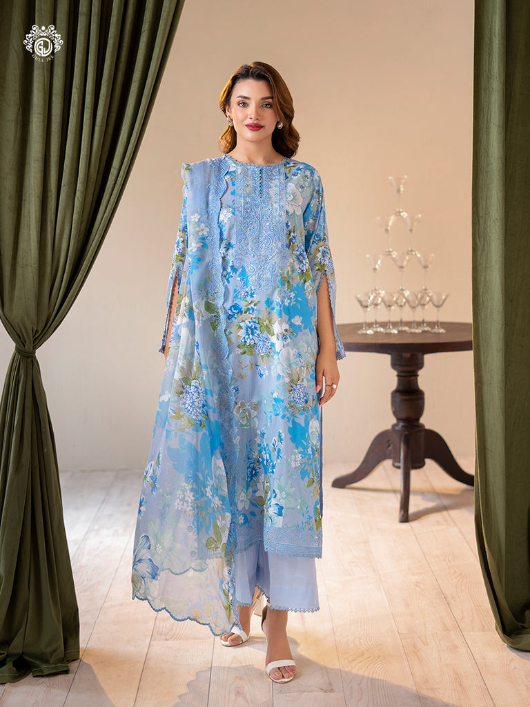 • Duppata: Digital Printed Bamber Chiffon Embroidered Cut-Work