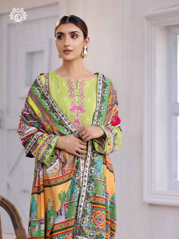 • Front: Luxury Digital Printed Linen Embroidered Neckline
