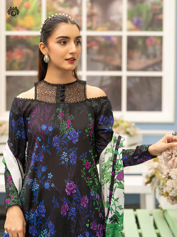 • Duppata: Digital Printed 100% Pure Voil Lawn Boring Embroidered
