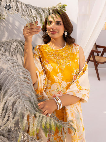 • Duppata: Digital Printed Pure Lawn Border Sequin Embroidered Cut-Work
