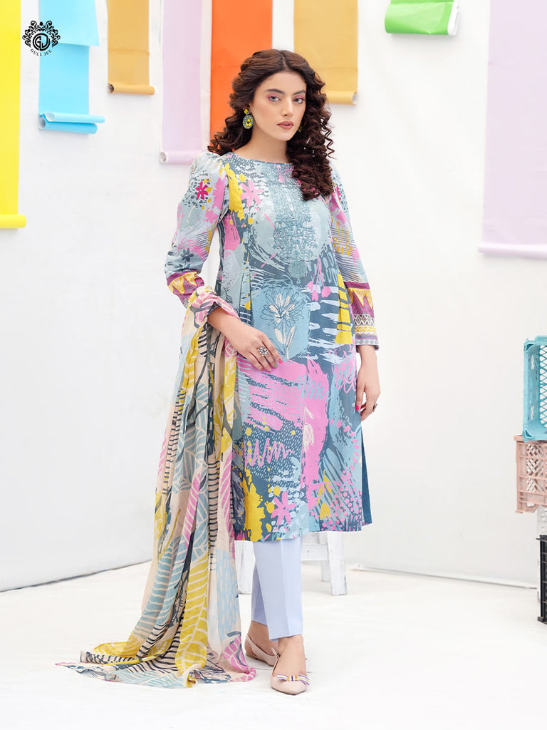 - Front: Luxury Digit Printed Lawn Embroidered Neck-Line
