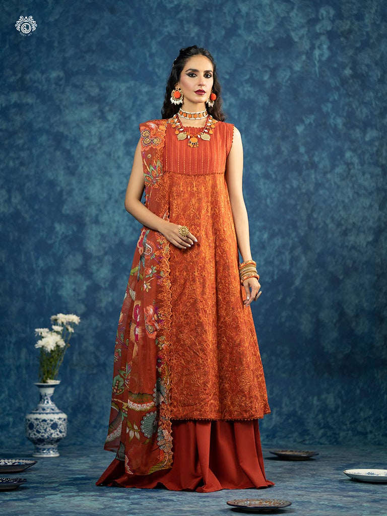 • Dupatta:   Luxury Digital Printed Bamber Chiffon Embroidered Cut-work