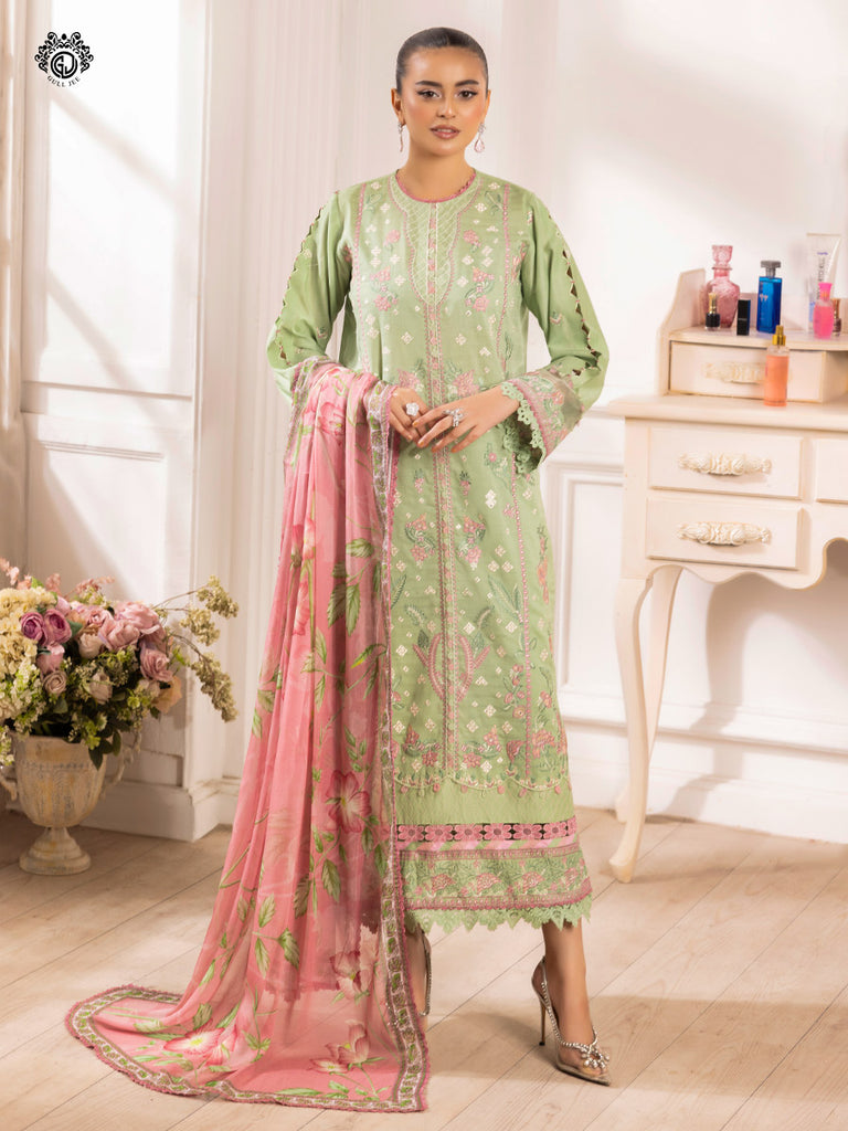 Front: Dyed Exclusive Luxury Lawn Boring Embroidered
