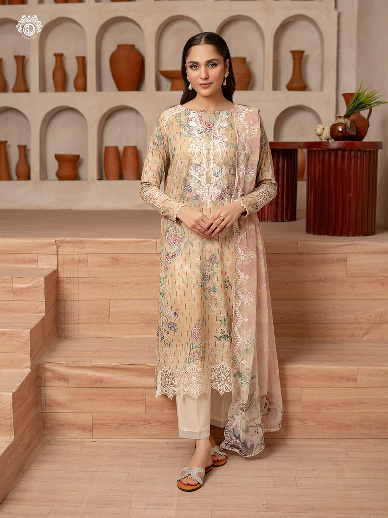 • Front: Digital Printed Multi Brosha Lawn Embroidered Neck