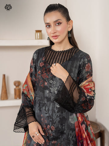Front: Luxury Digital Printed Lawn Daman Embroidered