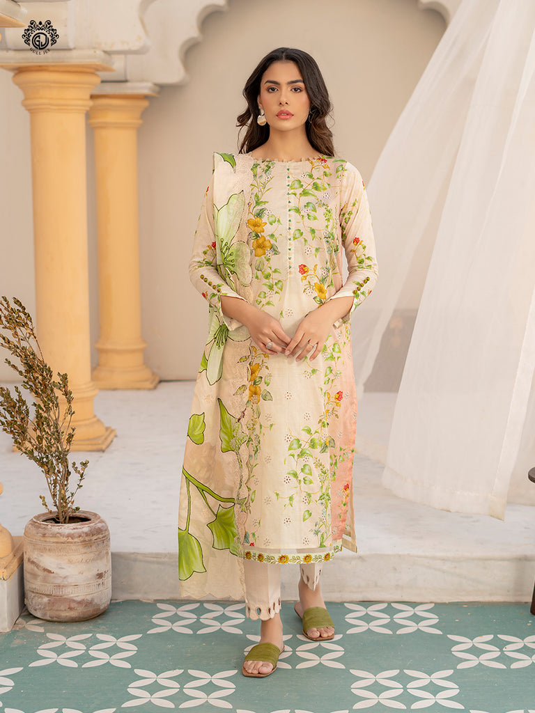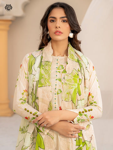 • Duppata: Digital Printed 100% Pure Voil Lawn Border Embroidered