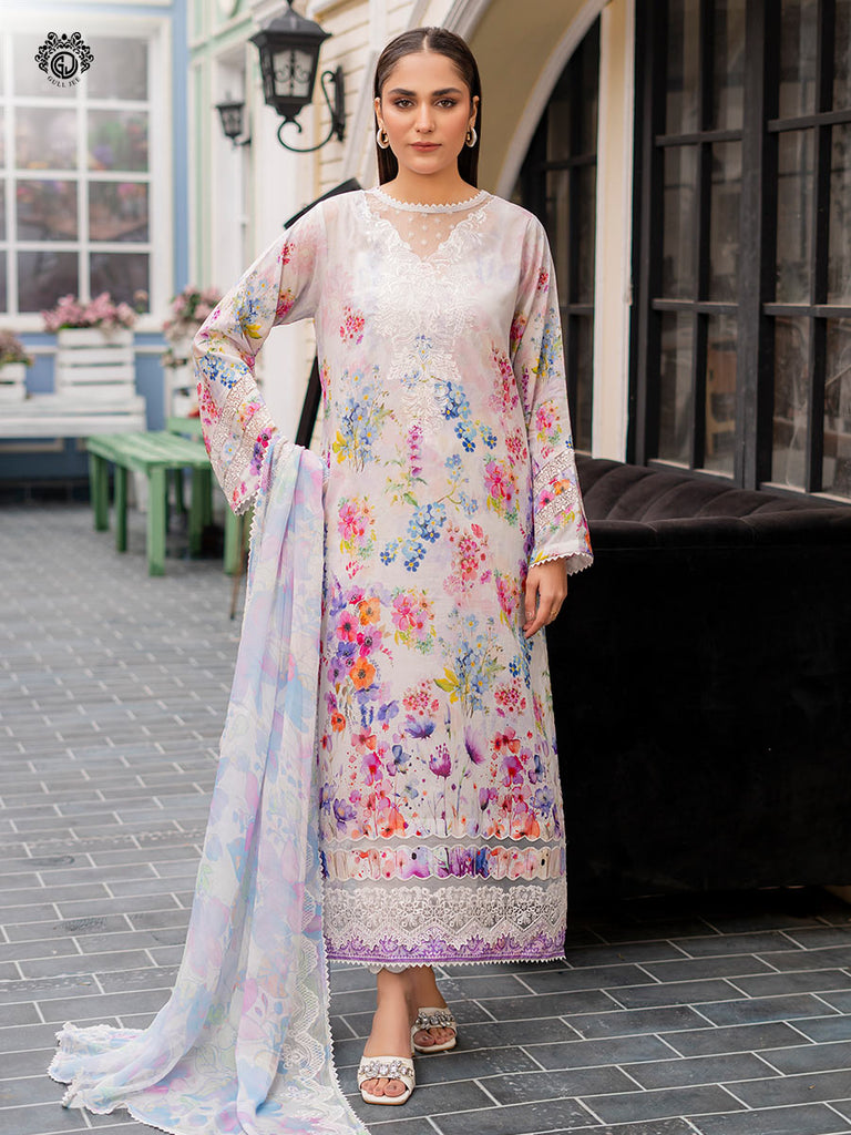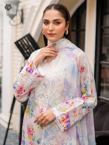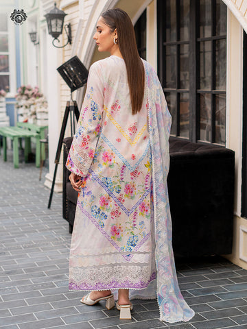 • Duppata:  Digital Printed Bamber Chiffon Embroidered Cut-Work