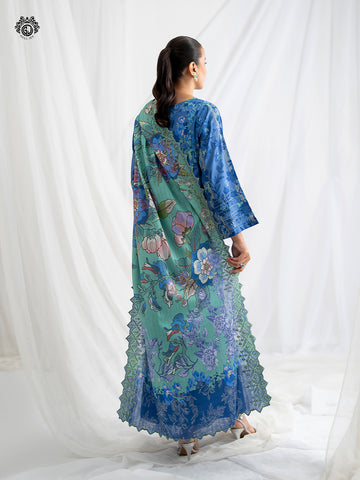 - Duppata: Digital Printed Pure Check Lawn Embroidered Cut-Work