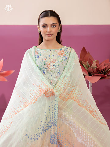 • Dupatta: Digital Printed Bamber Chiffon Stripe Embroidered Cut-work