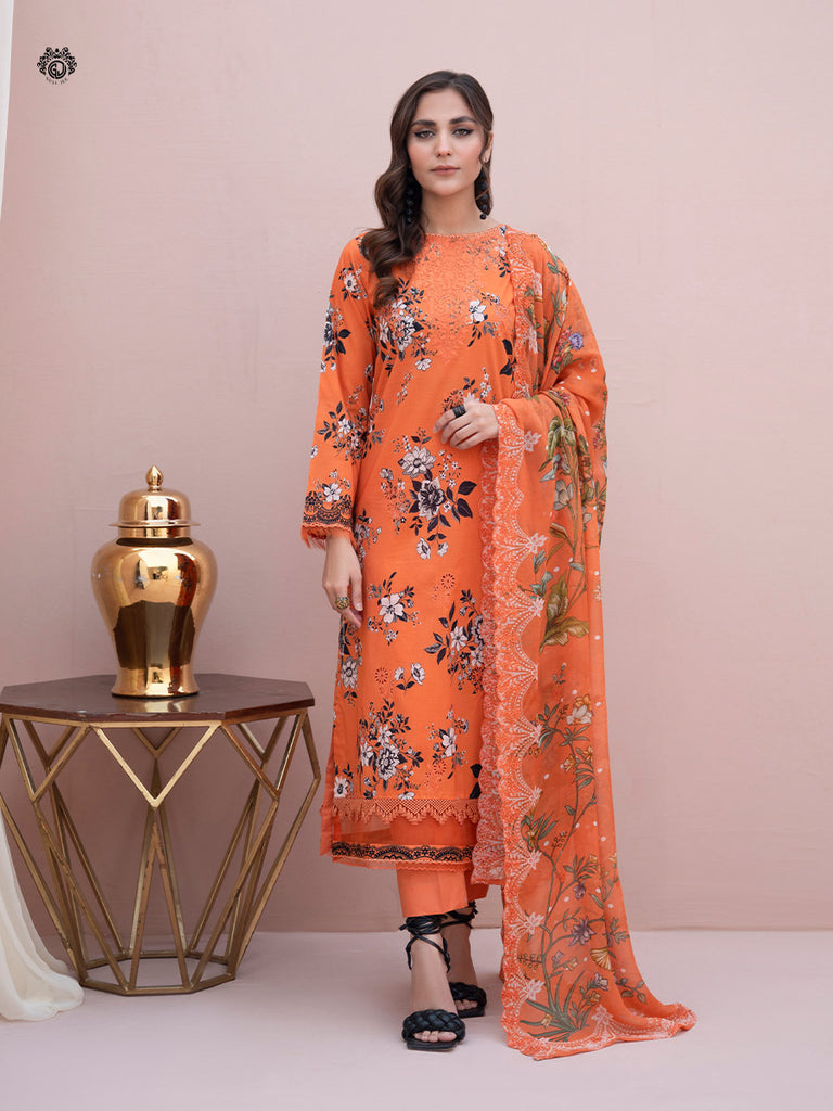 • Front: Luxury Digital Printed  Lawn Boring Embroidered Front with Organza Embroidered Neck