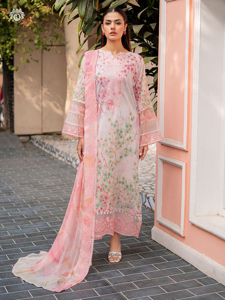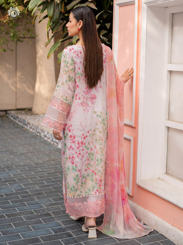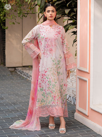 • Duppata:  Digital Printed Bamber Chiffon Embroidered Cut-Work