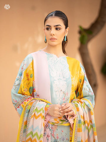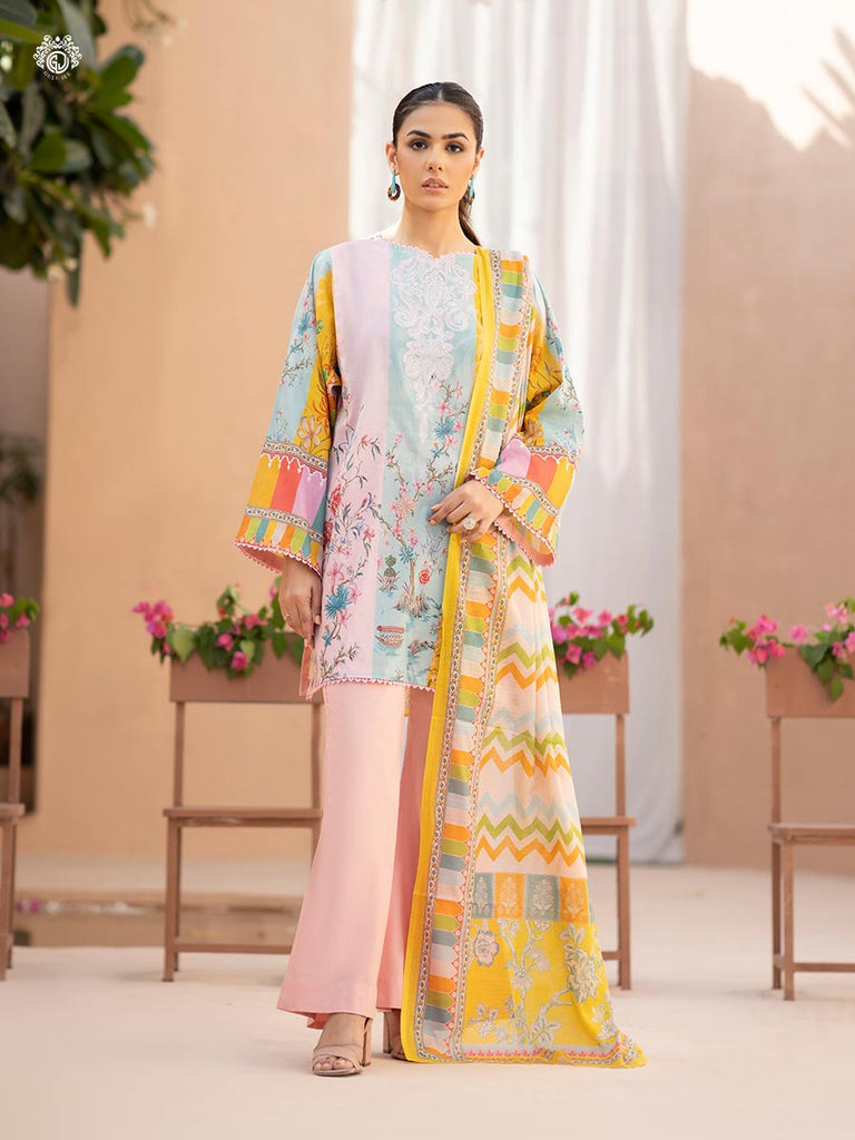 • Front: Luxury Digital Printed Lawn Chikankari Embroidered Neck