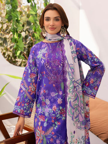 • Duppata: Digital Printed Pure Lawn Border Sequin Embroidered Cut-Work