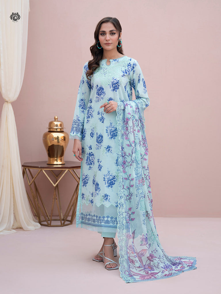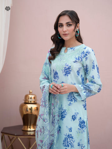 • Front: Luxury Digital Printed  Lawn Boring Embroidered Front with Organza Embroidered Neck