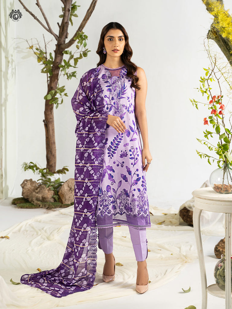 • Dupatta: Luxury Digital Printed Lawn Sequin Embroidered Cut-work