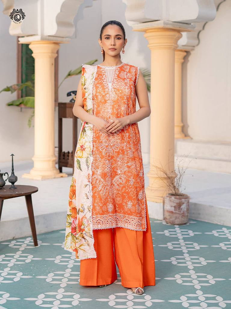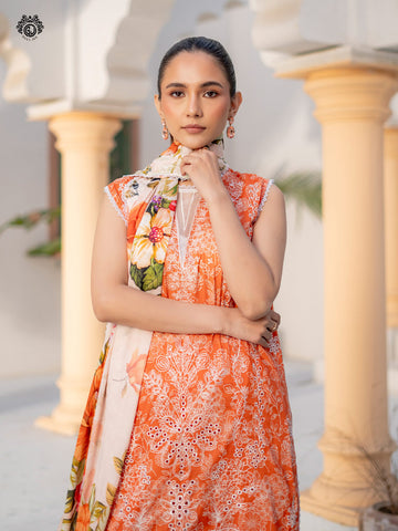 • Duppata: Luxury Digital Printed Pure Stripe Lawn Embroidered Cut-Work