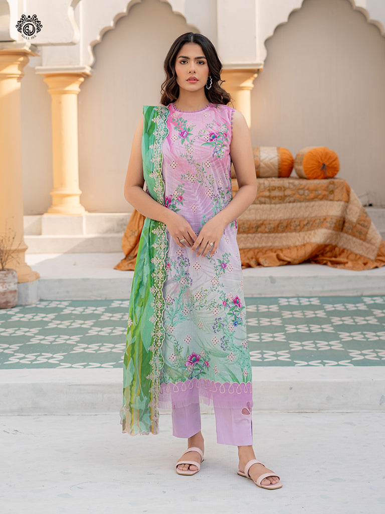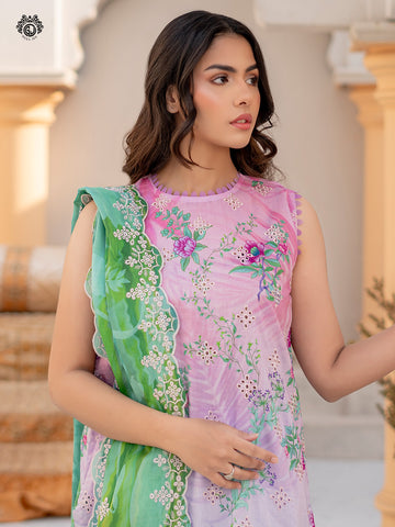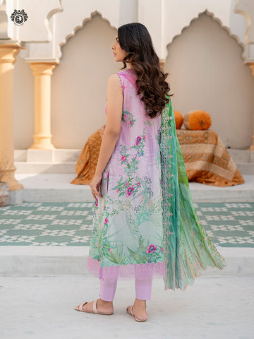 • Duppata: Digital Printed 100% Pure Voil Lawn Border Embroidered