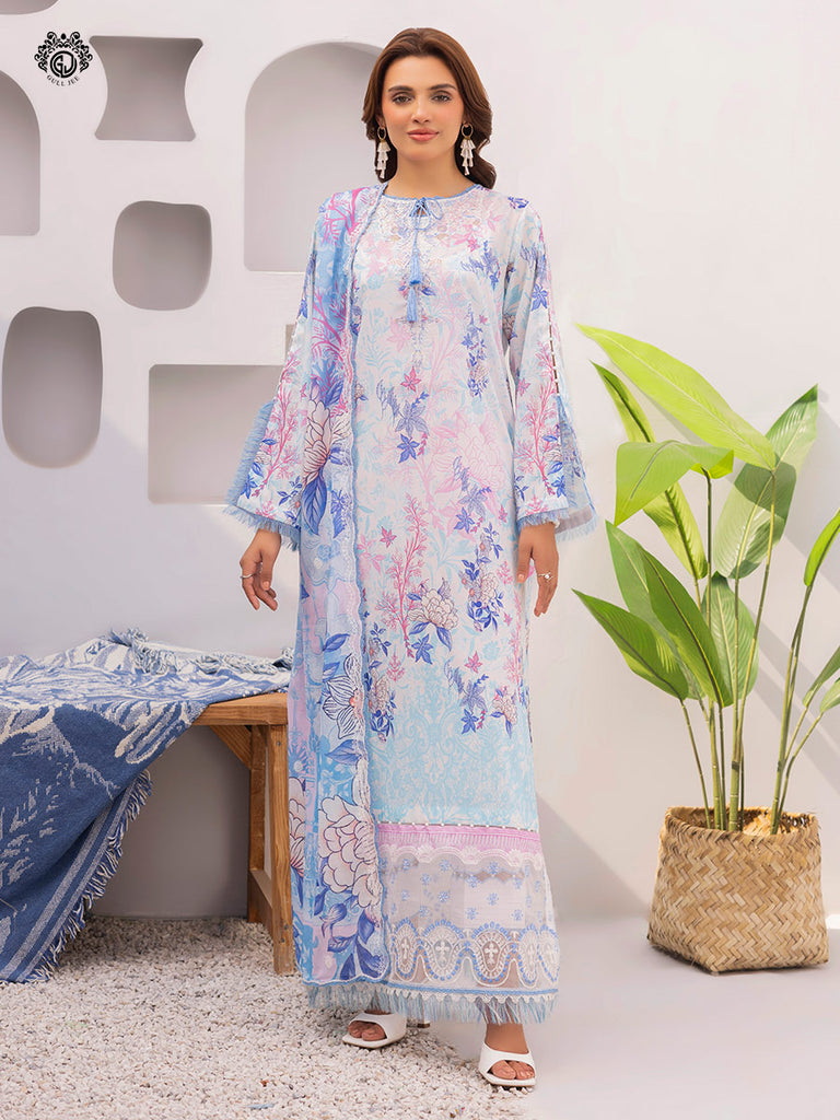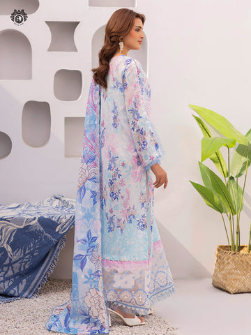 • Duppata: Digital Printed Pure Lawn Border Sequin Embroidered Cut-Work