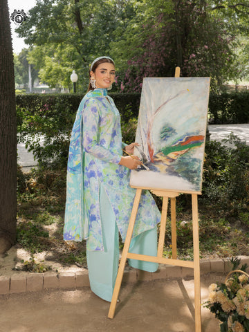 • Duppata: Digital Printed Zari Pure Fancy Lawn Embroidered
