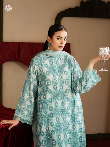 - Duppata: Digital Printed Bamber Chiffon Embroidered Cut-Work
