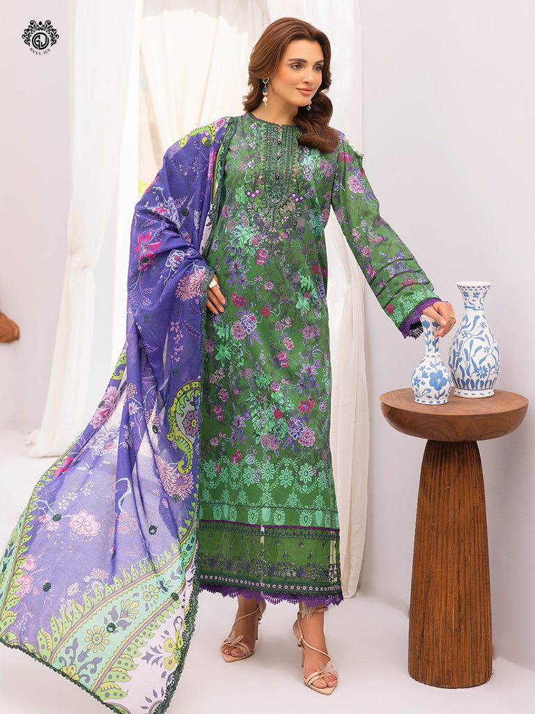 • Duppata: Digital Printed Pure Lawn Border Sequin Embroidered Cut-Work