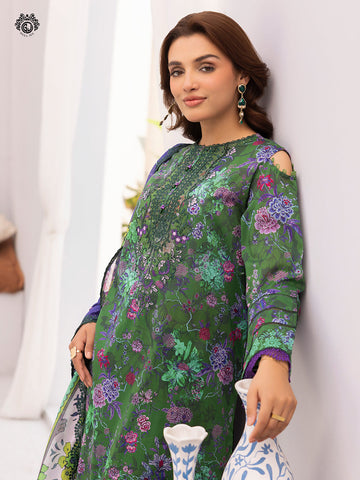• Front: Digital Printed Lawn Same Organza Sequin Embroidered Neck