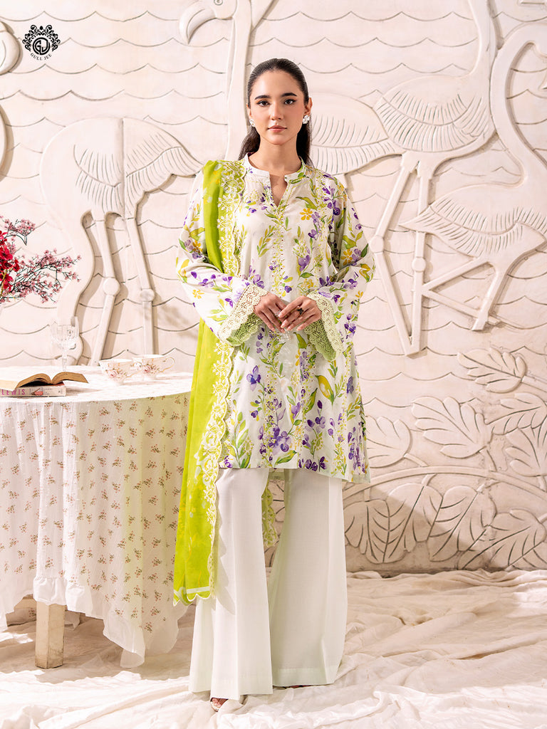 • Duppata: Digital Printed Pure Lawn Embroidered Cut-Work