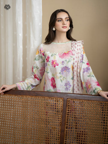 • Dupatta: Luxury Digital Printed Bamber Chiffon Embroidered Cut-work