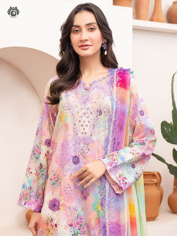 Front: Luxury Digital Printed Lawn Boring Embroidered Front with Boring Embroidered Neck