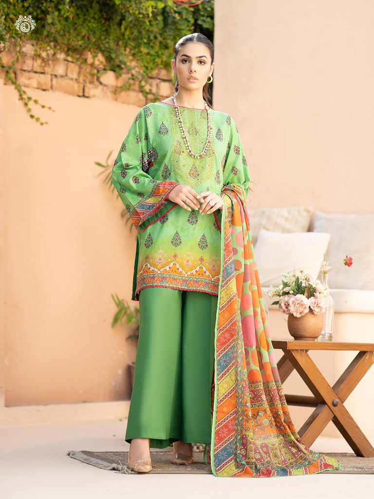 • Front: Luxury Digital Printed Lawn Chikankari Embroidered Neck