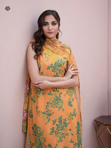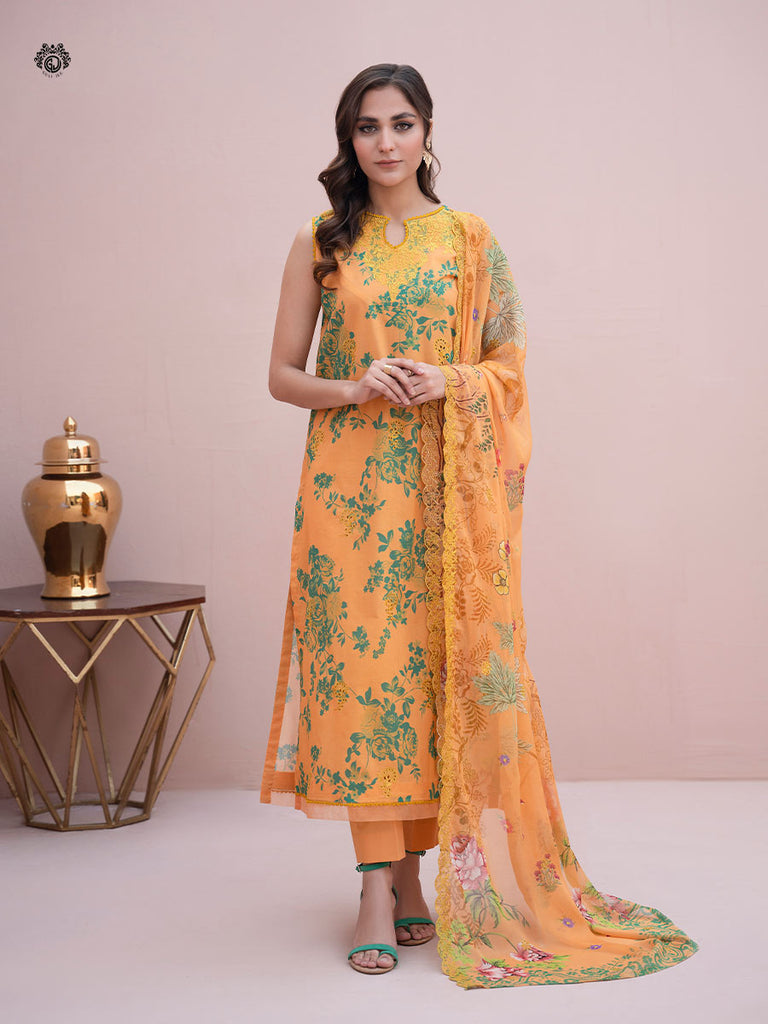 • Front: Luxury Digital Printed  Lawn Boring Embroidered Front with Organza Embroidered Neck