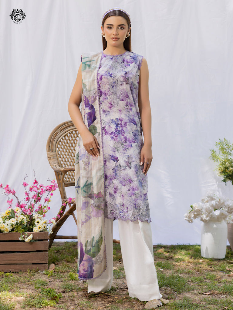 • Duppata: Digital Printed Zari Pure Fancy Lawn Embroidered