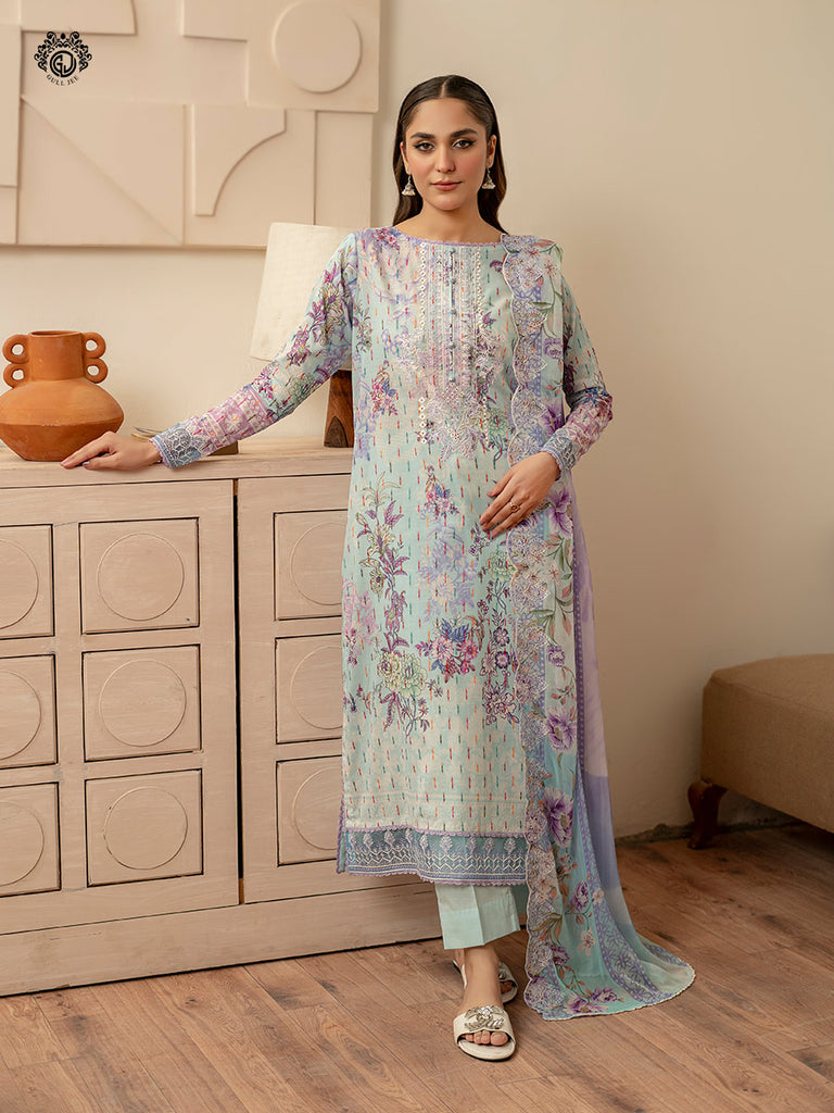 • Front: Digital Printed Multi Brosha Lawn Embroidered Neck