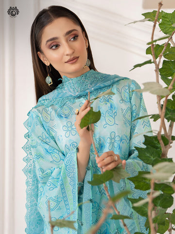 • Duppata: Digital Printed Bamber Chiffon Embroidered Cut-Work