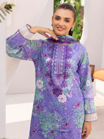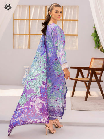 - Duppata: Digital Printed Pure Lawn Border Sequin Embroidered Cut-Work