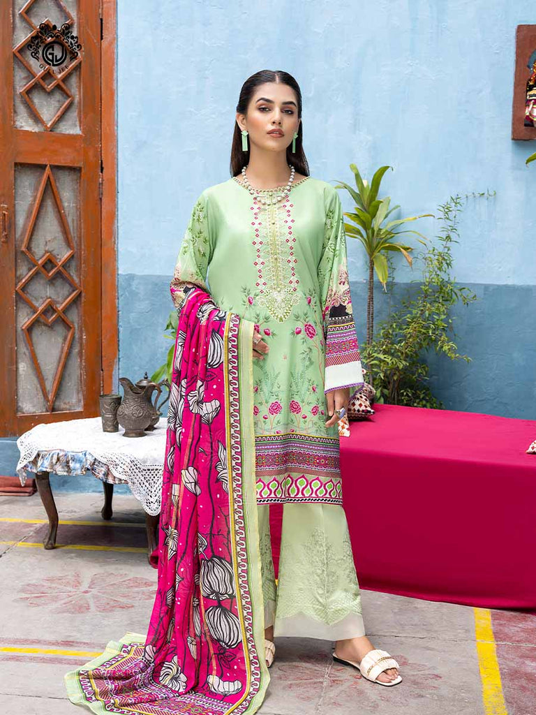 • Front: Luxury Digital Printed  Embroidered Neckline cambric Cotton