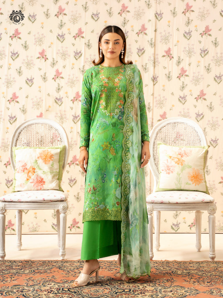 • Front: Digital Printed Lawn Neck Embroidered